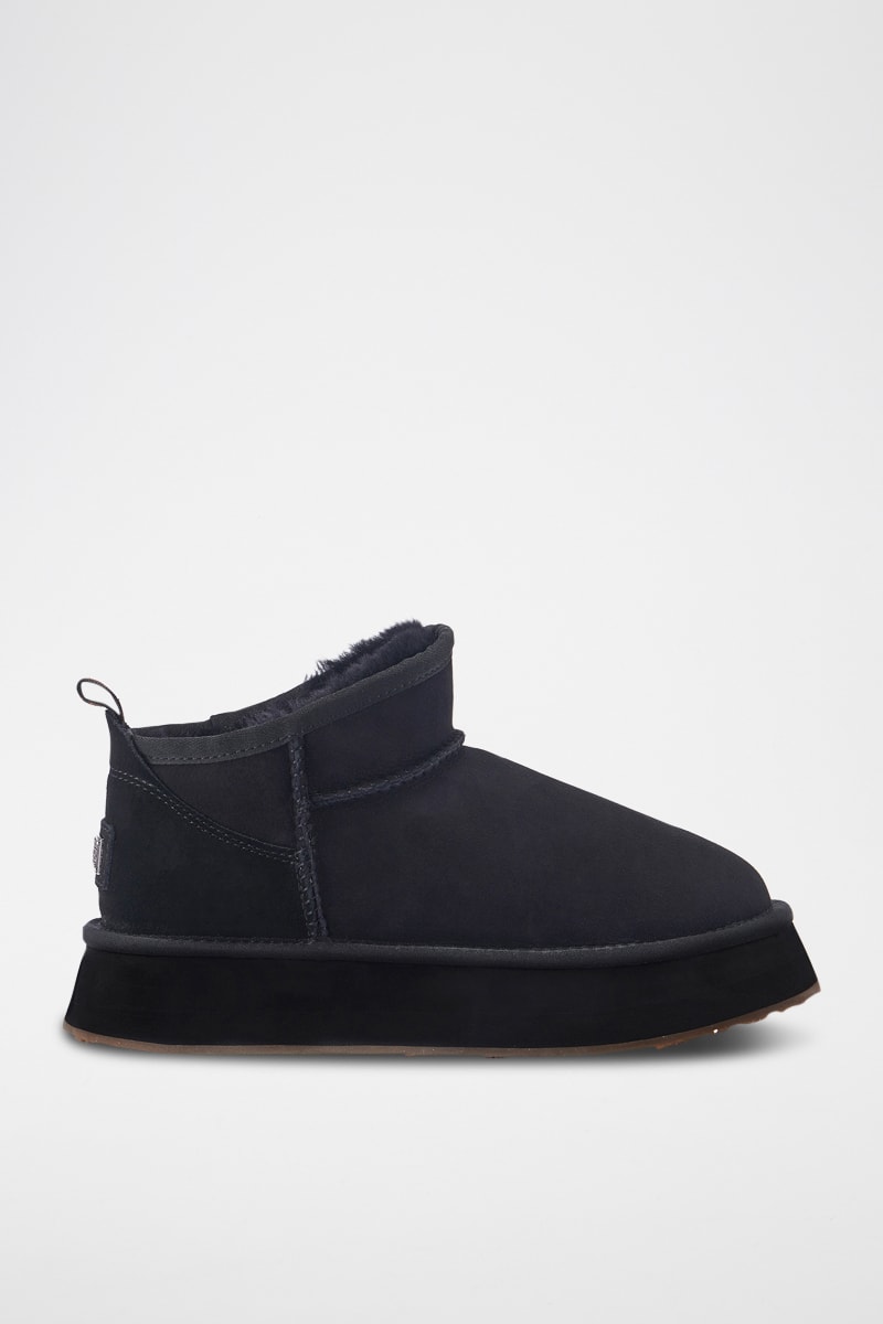 Bottines plateformes fourrées en cuir de mouton nubuck.