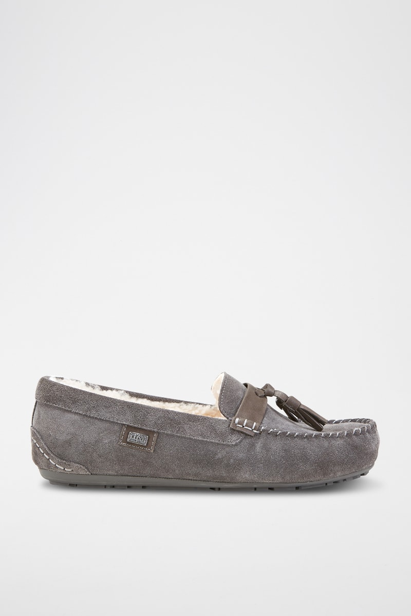 Mocassins fourrés en cuir de mouton nubuck - Gris