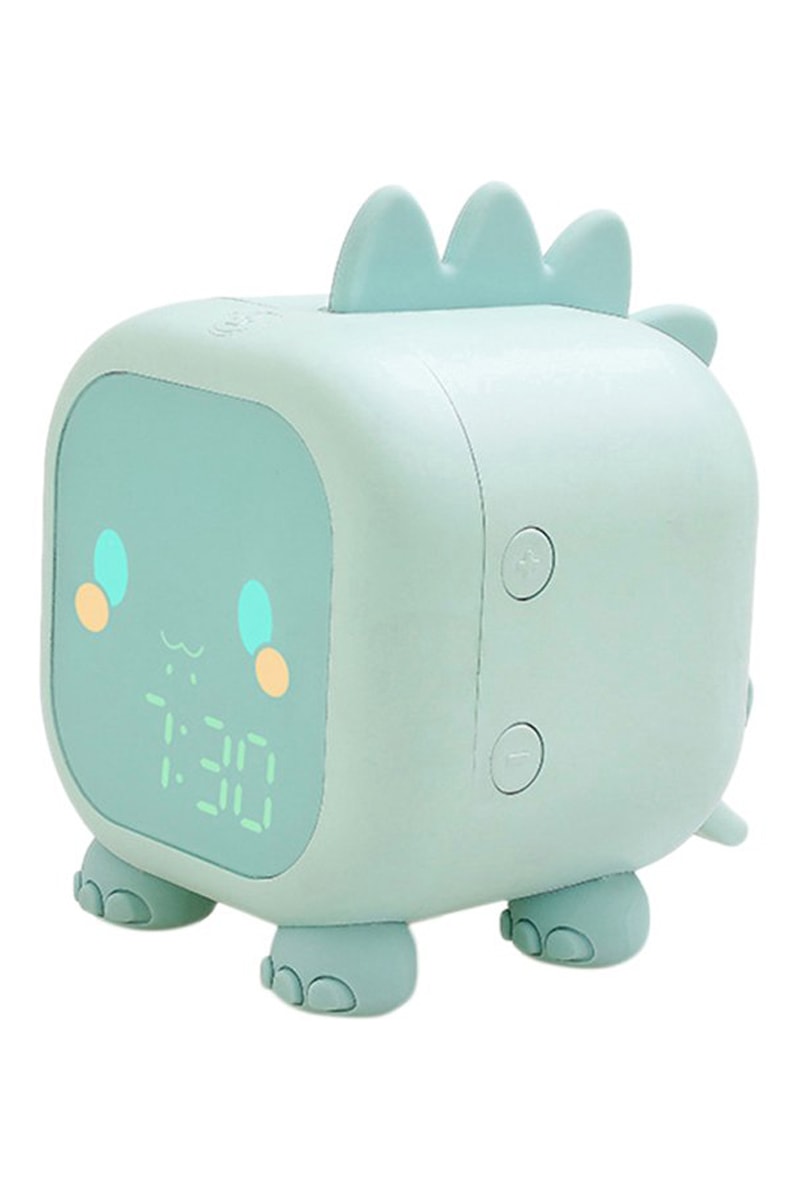Faisant également office de veilleuse grâce à ses pointes dorsales éclairées multicolores, ce petit réveil dispose d’un affichage digital ludique permettant d’afficher l’heure mais également la température de la pièce.