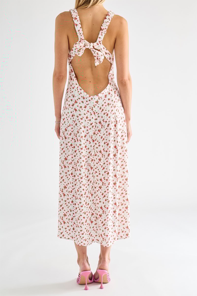 Découpe avec liens à nouer et fermeture zippée au dos.