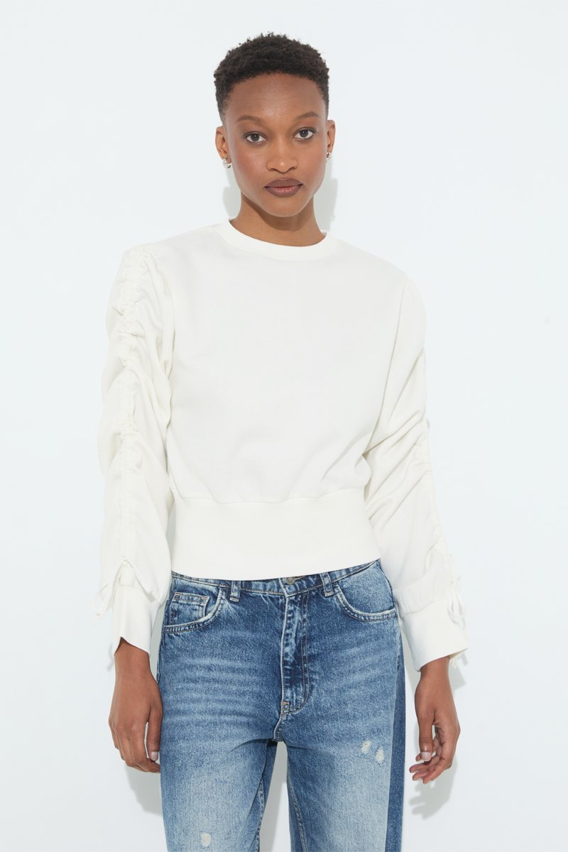 Sweat à manches longues avec liens de serrage.