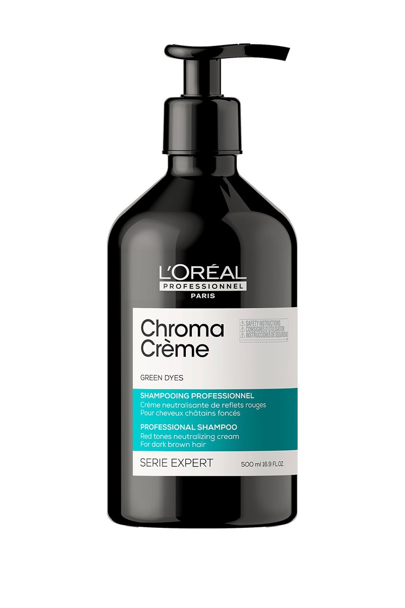 Neutralisez les reflets rouges indésirables et nourrissez intensément vos cheveux avec le shampoing Chroma Crème Vert L'Oréal Professionnel.
