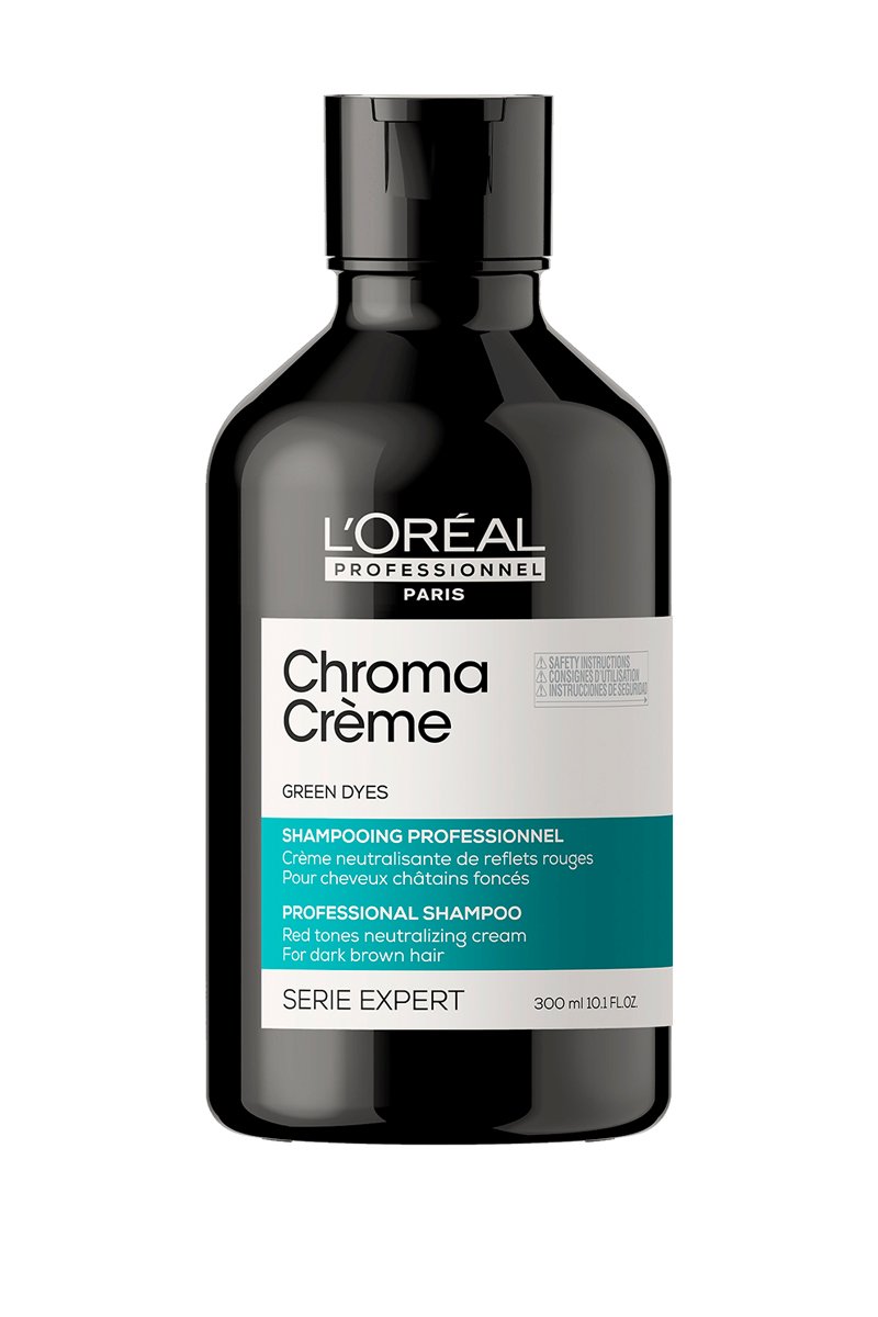 Neutralisez les reflets rouges indésirables et nourrissez intensément vos cheveux avec le shampoing Chroma Crème Vert L'Oréal Professionnel.