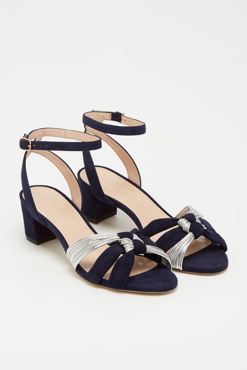 Sandales à talons en cuir de chèvre nubuck et cuir d'agneau nubuck Elvita - Bleu marine et argenté - Stuart Weitzman