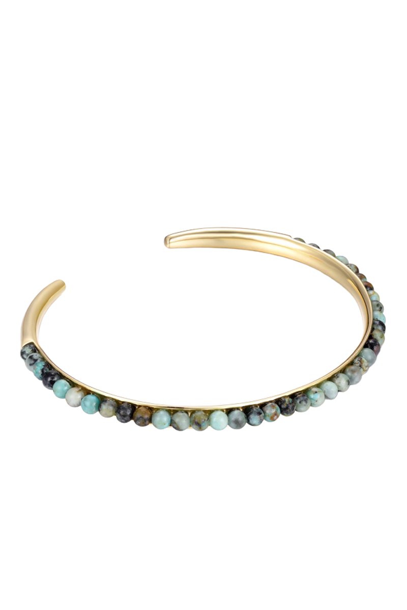 Jonc ouvert en argent plaqué or jaune sertie de turquoises.
