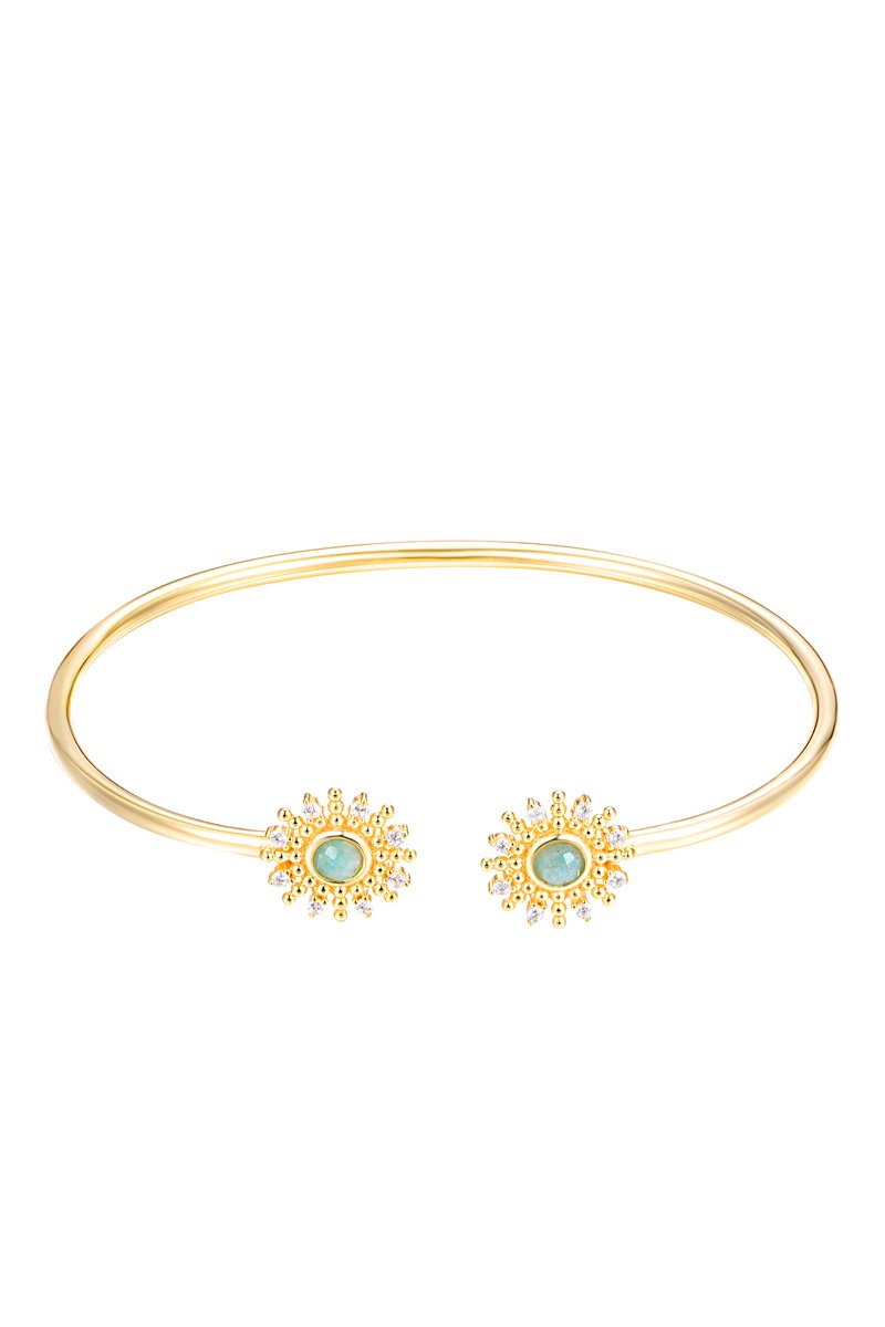 Jonc ouvert en argent plaqué or jaune serti d'amazonites et de zirconiums.