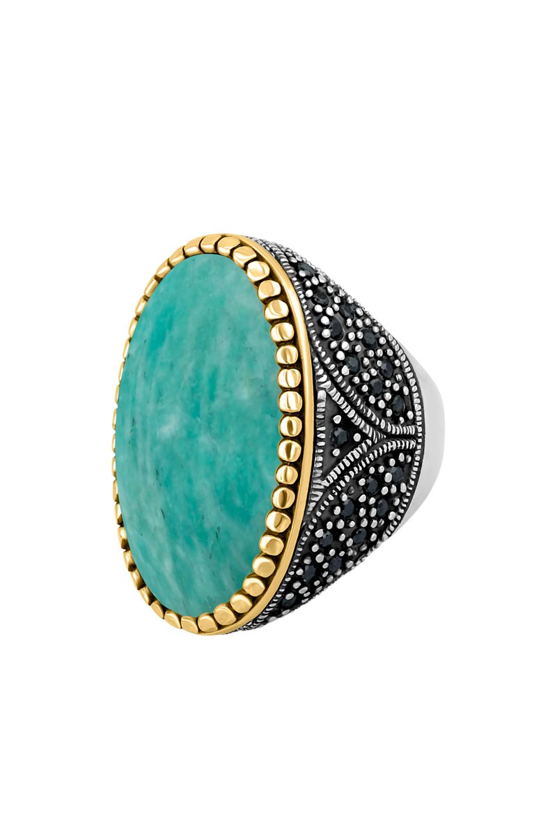 Bague en argent, argent plaqué or jaune sertie d'une amazonite.