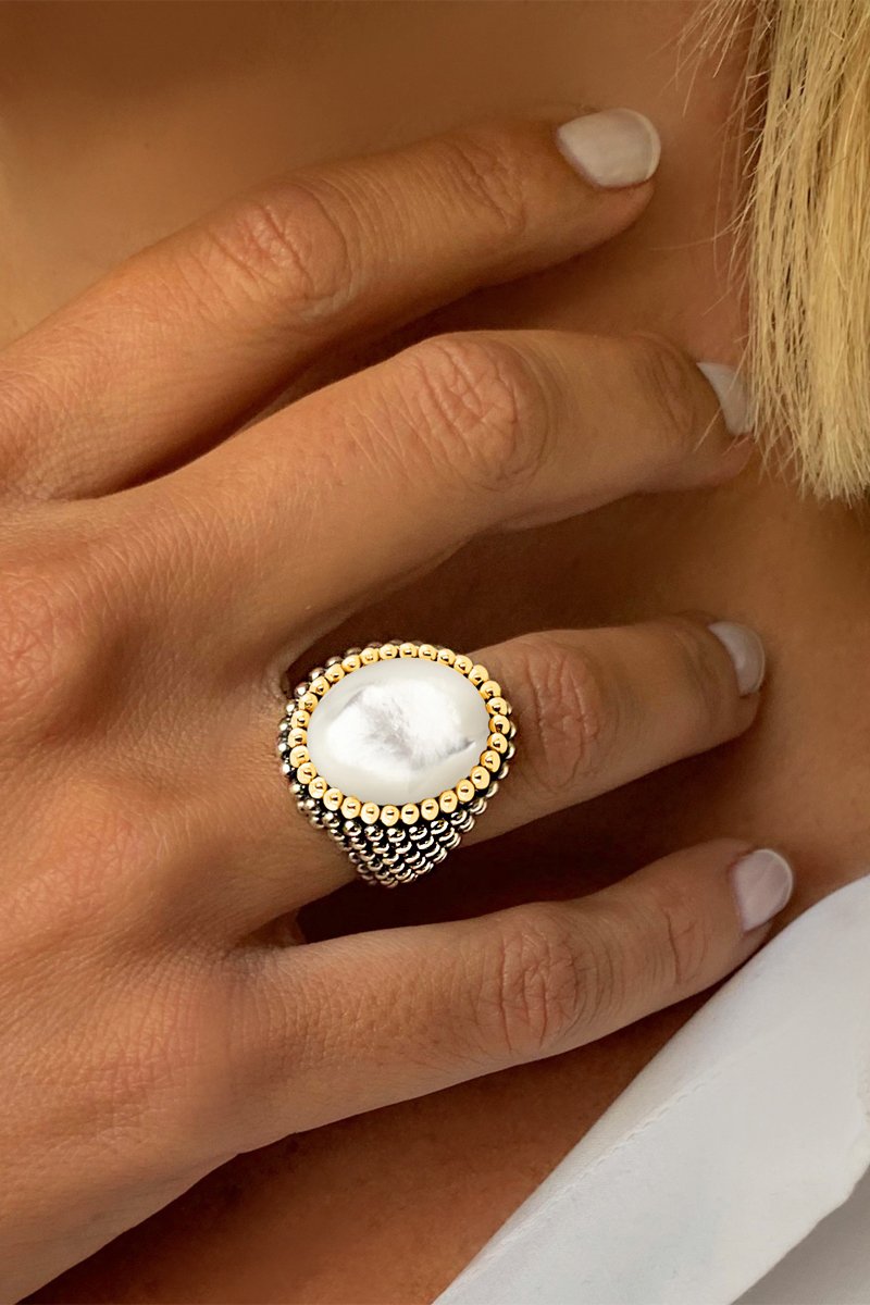 Bague - Argent, argent plaqué or jaune et nacre