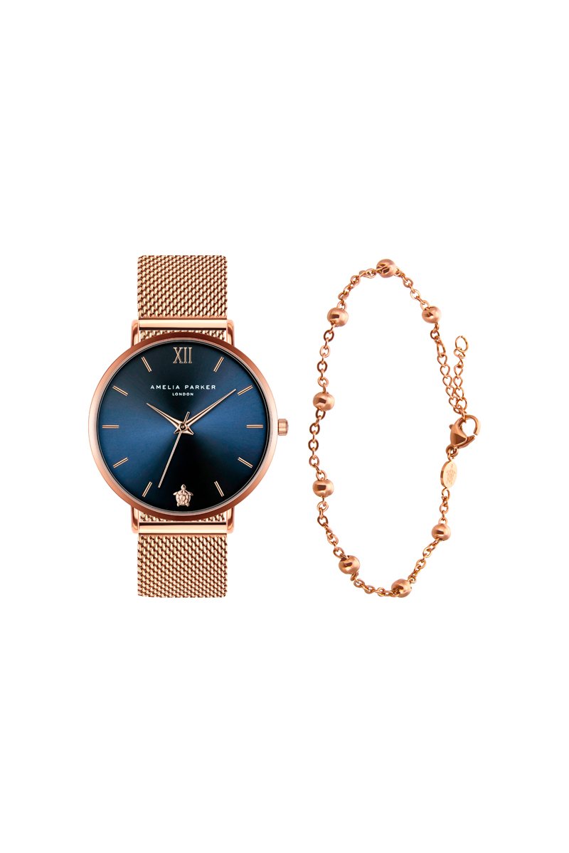 Coffret montre à quartz en acier et bracelet Midnight Sky