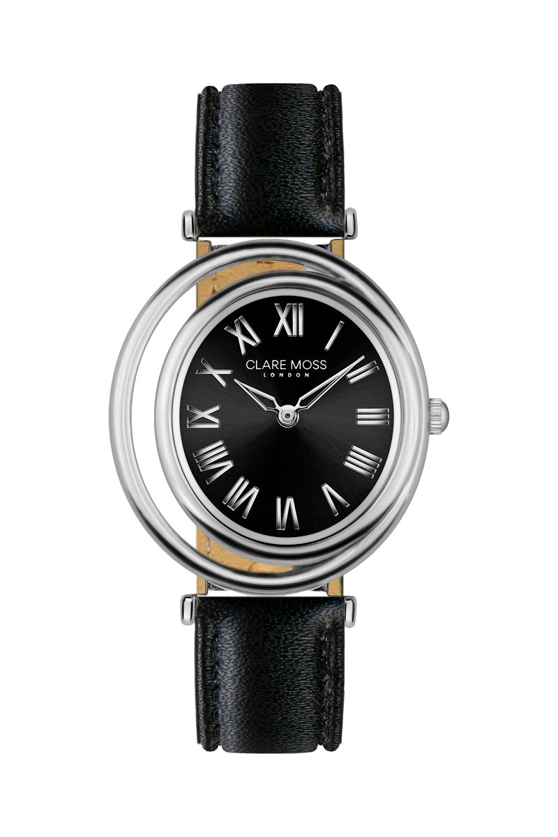Montre à quartz en cuir de veau Clare Petite - Argenté et noir