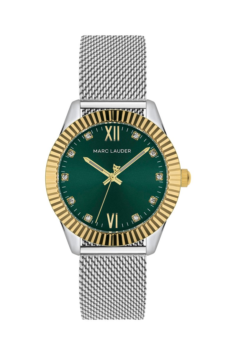 Montre à quartz en acier et zircons Buenos Aires - Argenté et vert