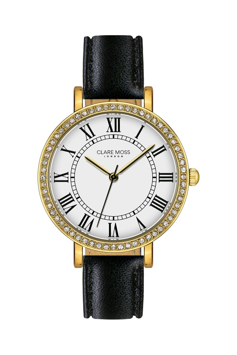 Montre à quartz en cuir et zircons London - Noir et blanc