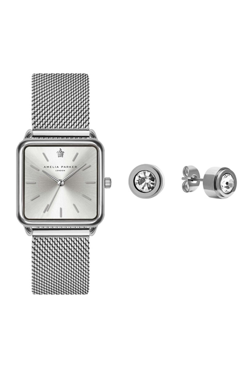 Coffret montre à quartz et boucles d'oreilles en cristal véritable