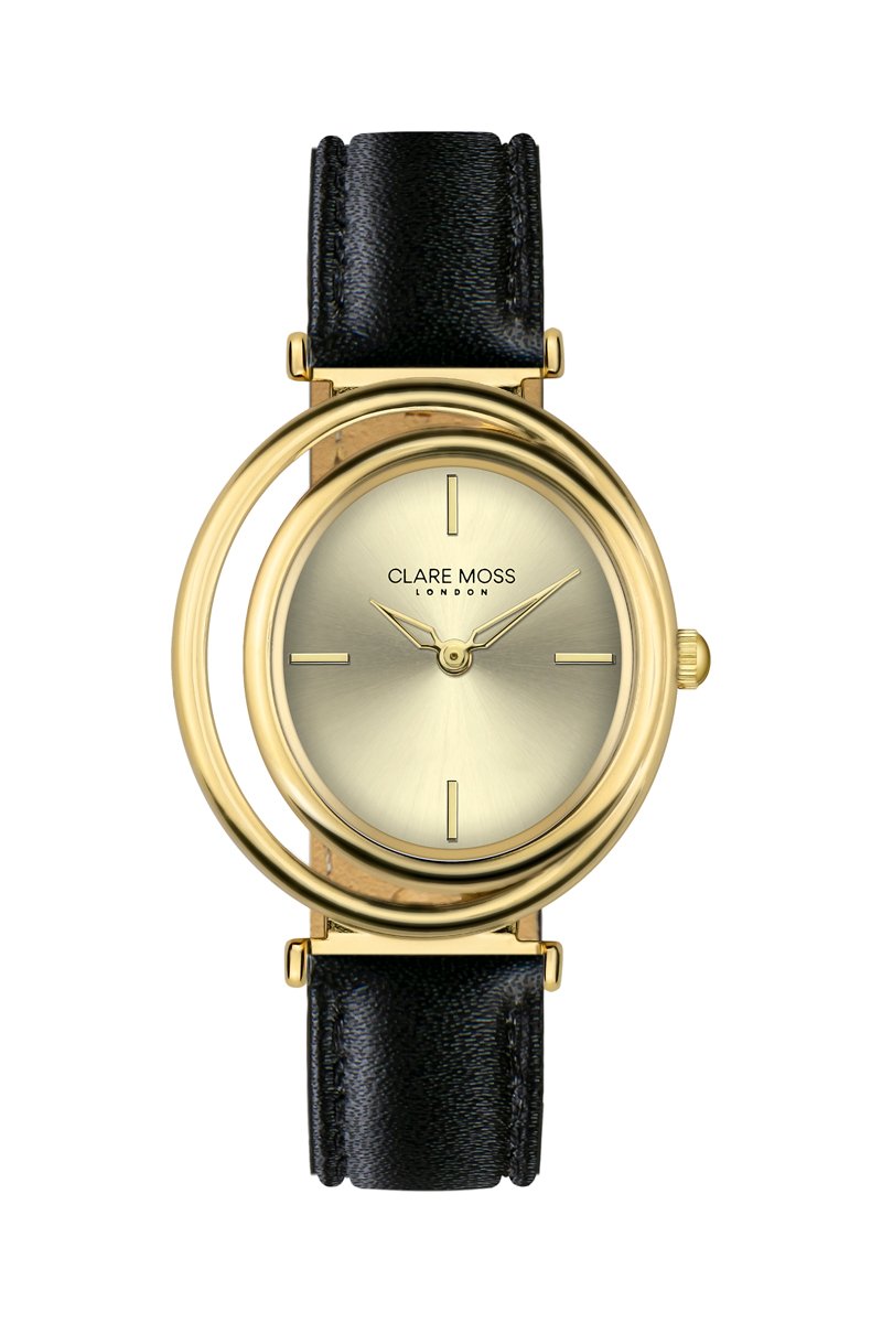 Montre à quartz en cuir de veau Clare - Doré et noir