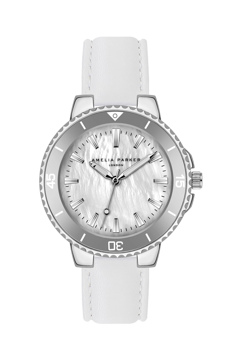 Montre à quartz en cuir Clayne - Argenté et blanc