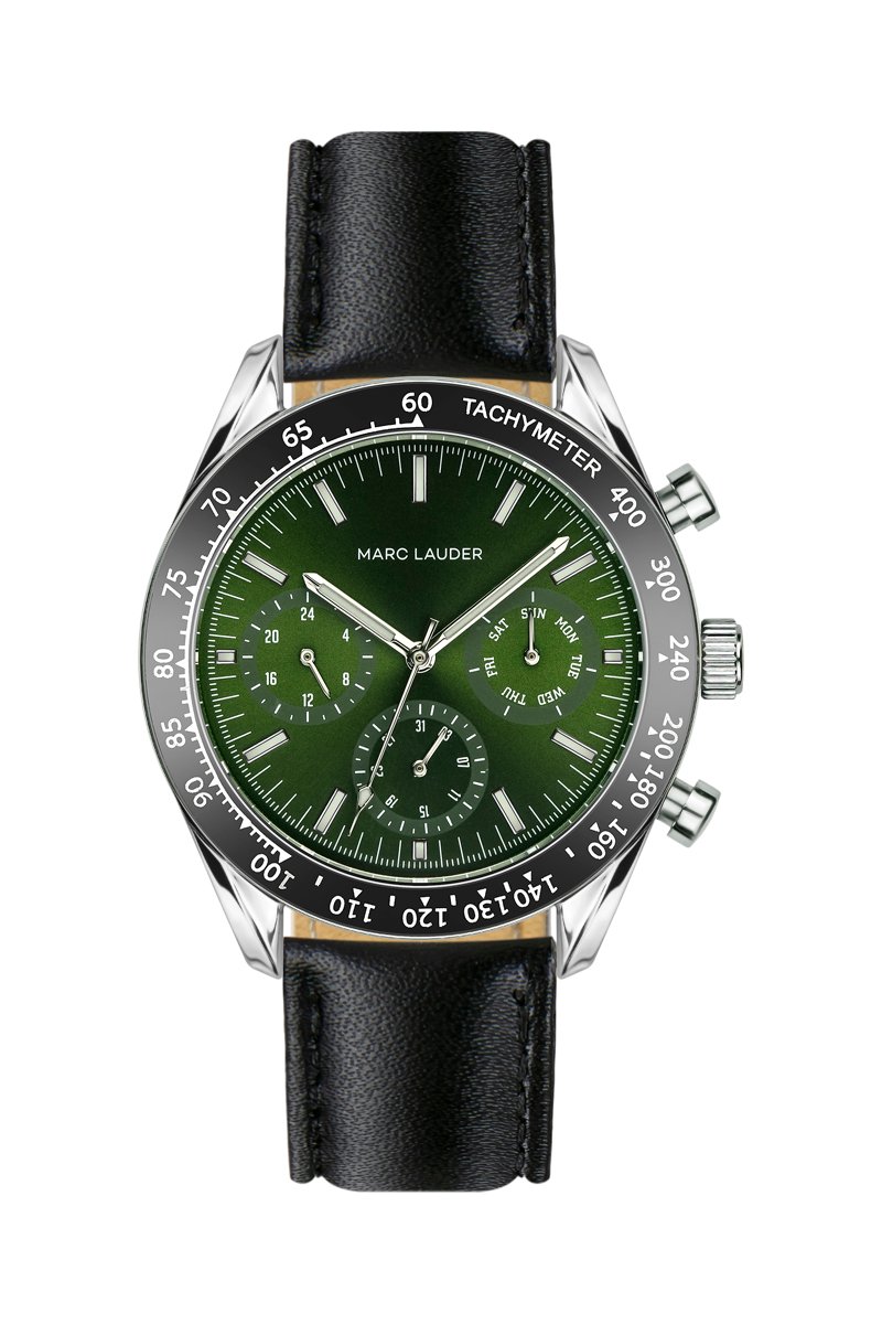 Montre à quartz en cuir Lisbon - Tachymètre - Noir et vert