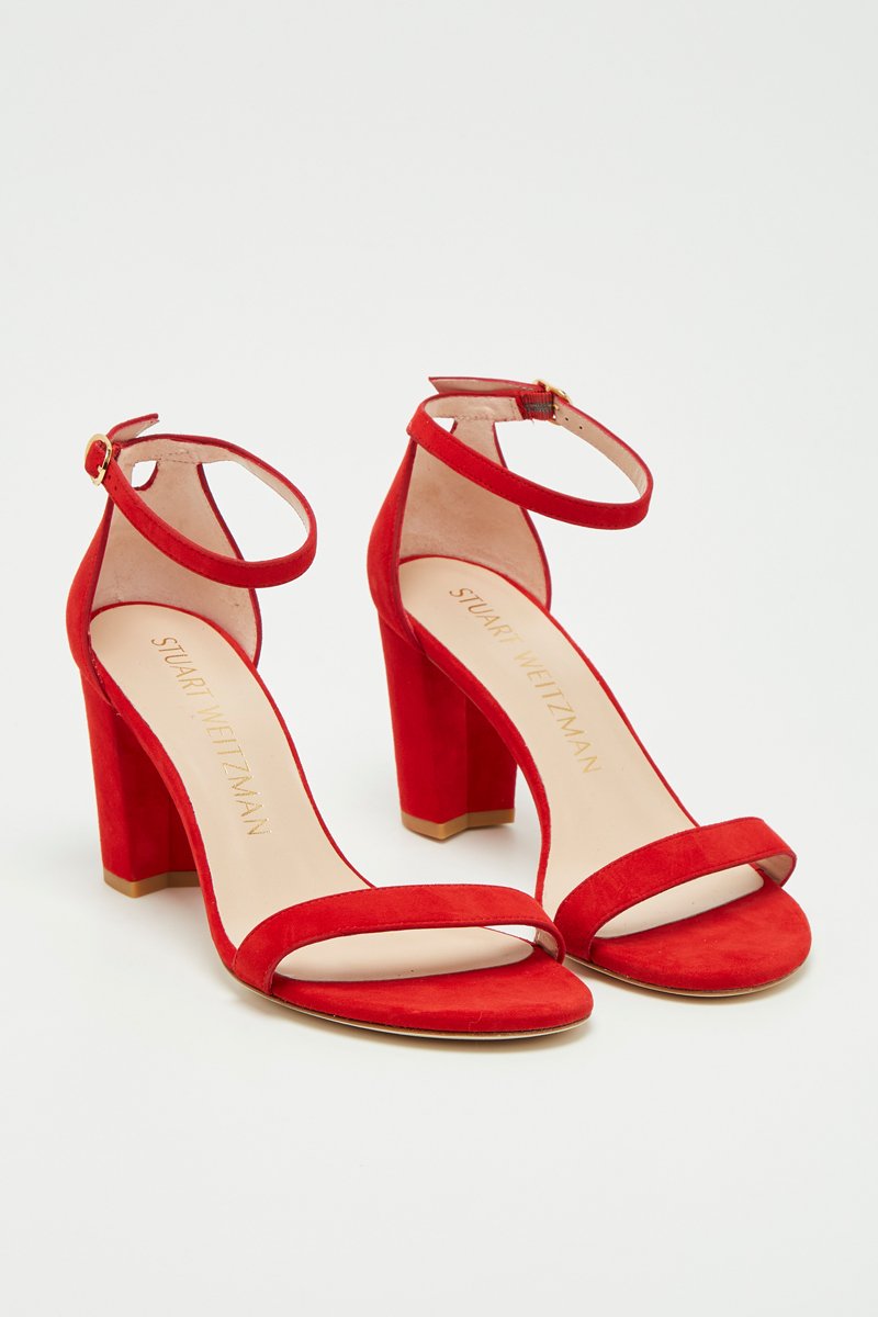 Sandales à talons en nubuck Nearlynude - Rouge - Stuart Weitzman