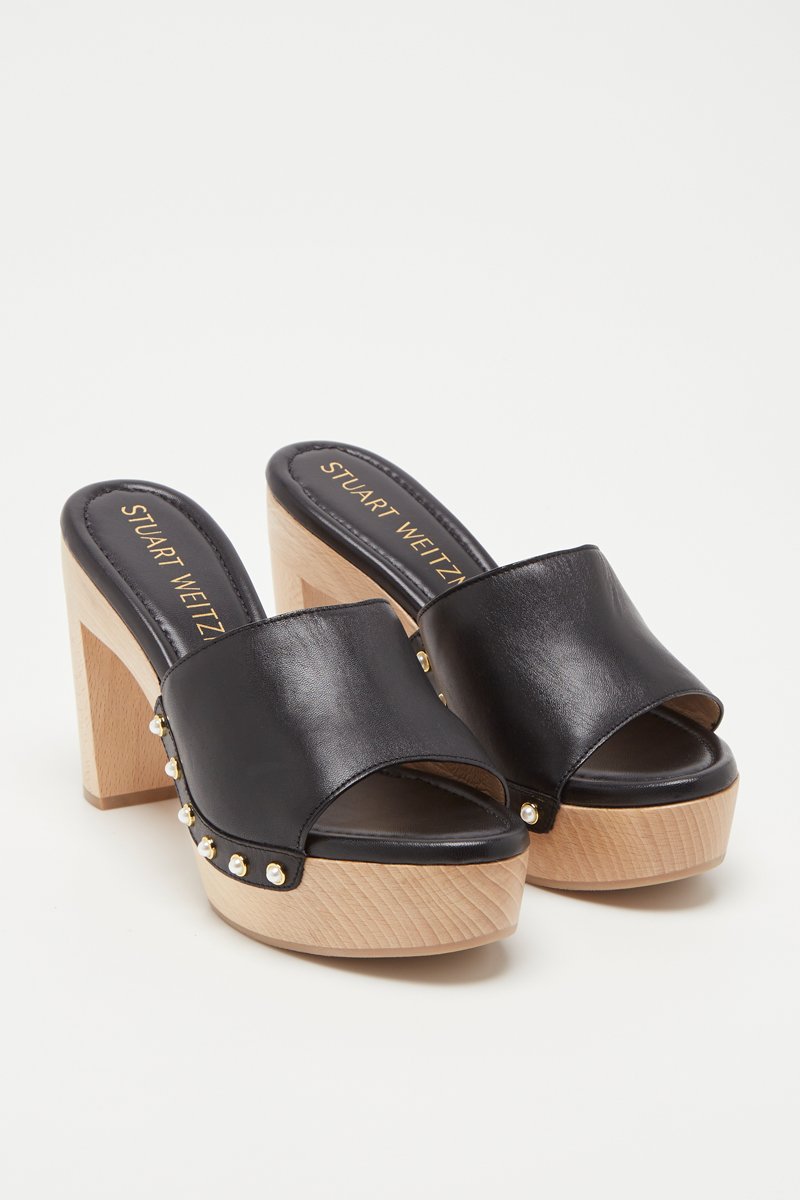 Mules à talons en cuir Pearl Clog - Noir - Stuart Weitzman
