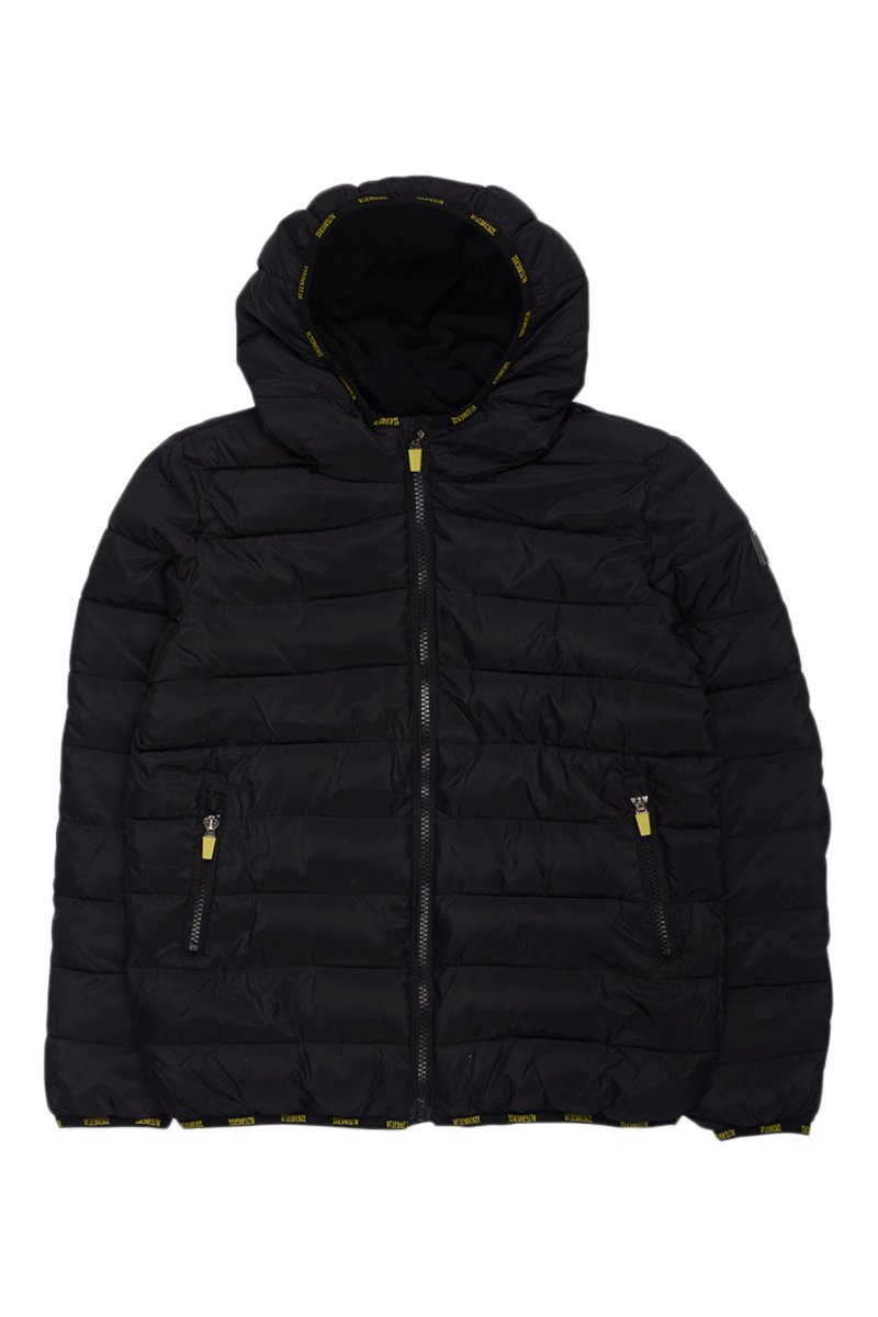 Empiècements avec lettrage sur la capuche, les manches et à la base.