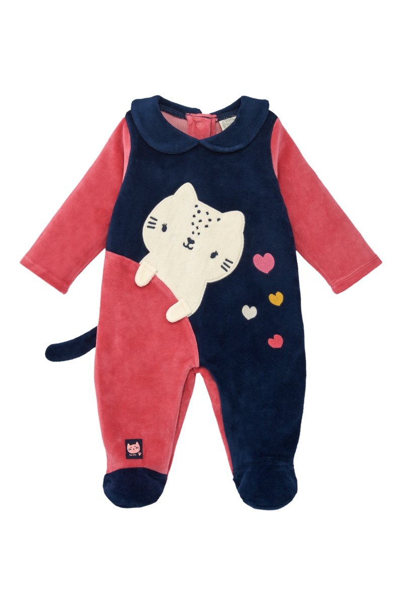 Motifs cœurs, tête de chat brodés et empiècement à motif tête de chat avec logo devant.