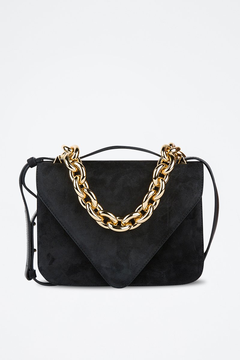 Sac porté épaule en cuir de veau nubuck et cuir d'agneau nubuck.