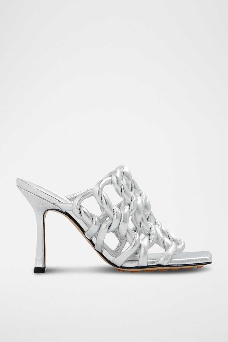 Mules à talons en cuir Lamé - Argenté - Bottega Veneta