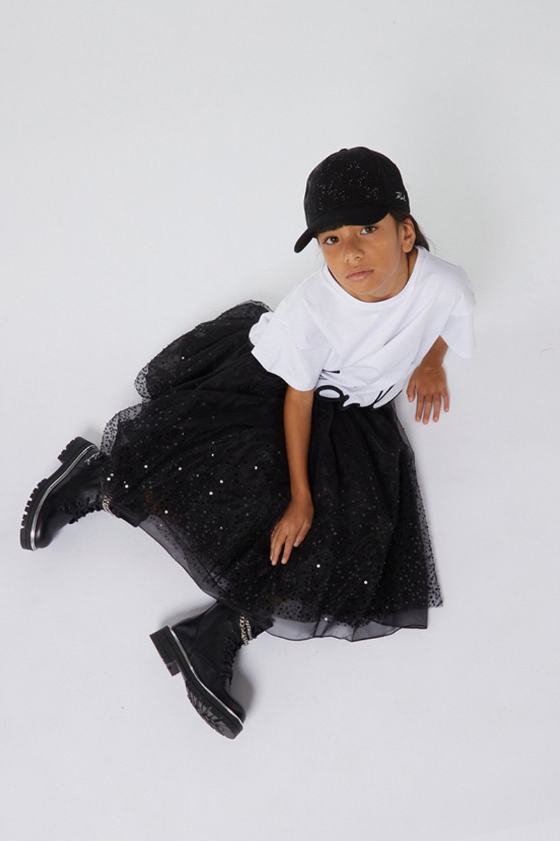 Le créateur Karl Lagerfeld a apporté un vent de fantaisie au dressing des enfants à travers une collection chic, rock et graphique, à son image. Il mettait en avant son célèbre chat Choupette et son propre profil, dans un univers fun et décalé. Un vestiaire digne des collections haute couture pour permettre aux enfants d’exprimer eux aussi leur sens de la mode.