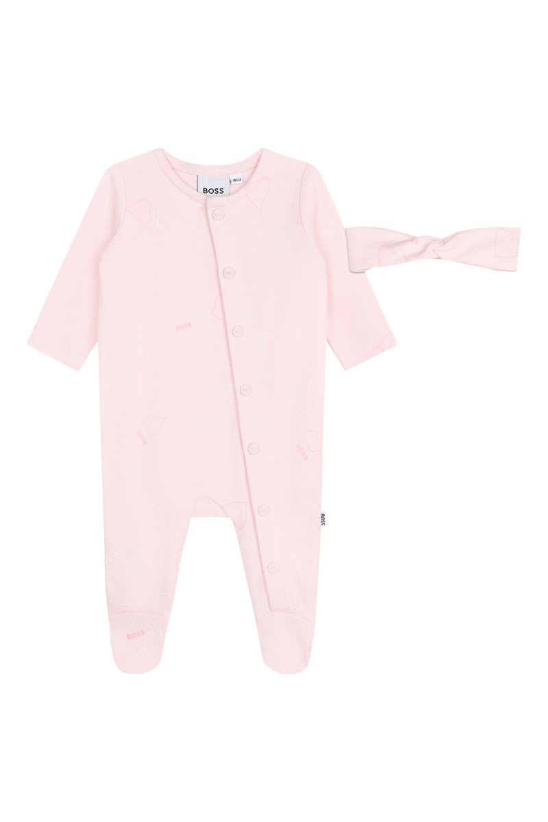 Grenouillère et bandeau en coton biologique - Rose - Boss