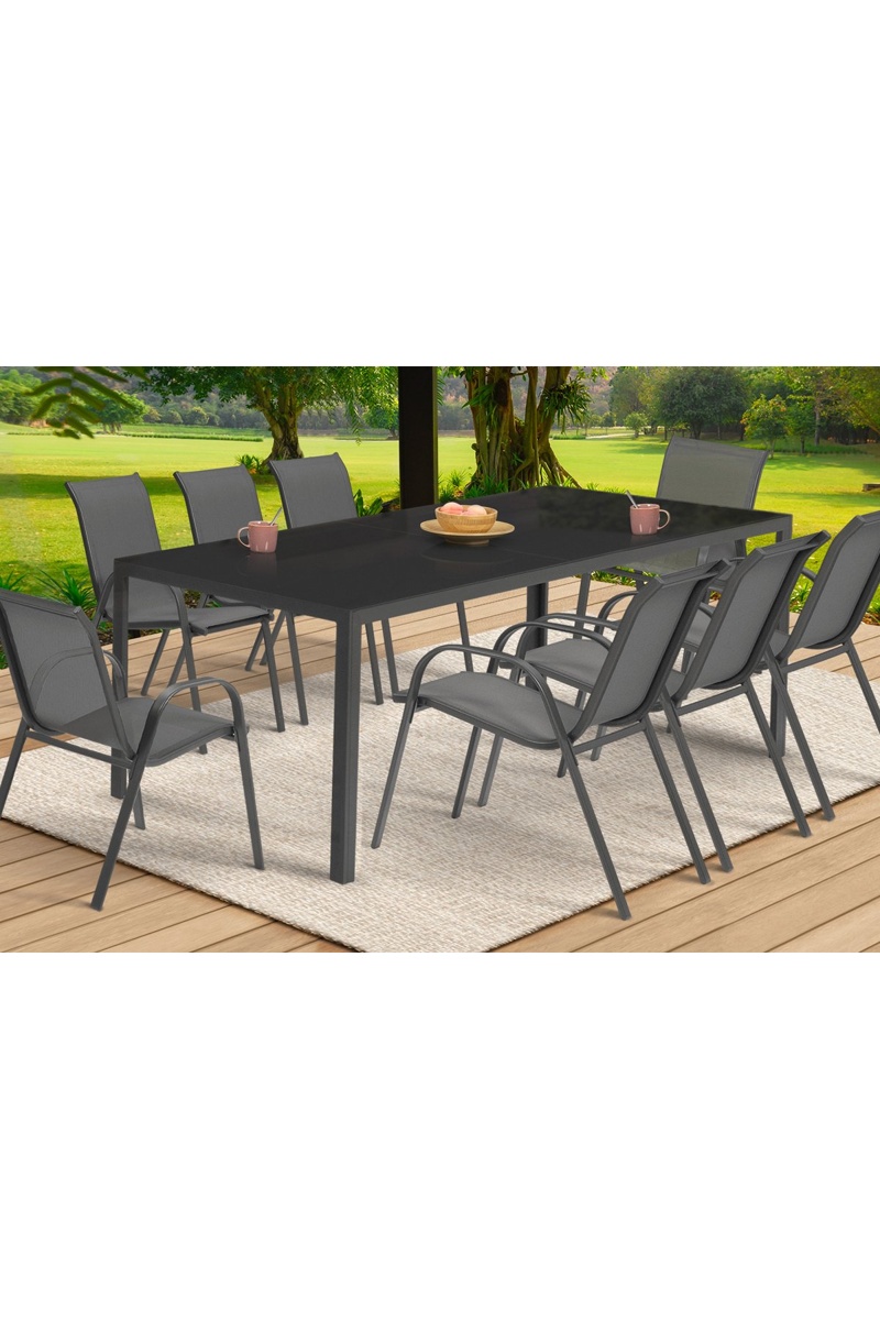 Ensemble repas Minorca 8 places en textilène et verre trempé gris anthracite