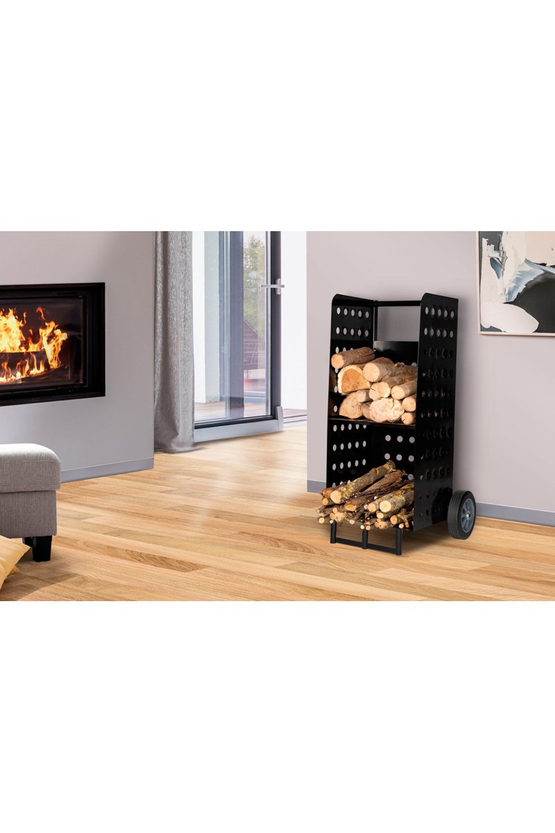 Porte-bûches à roulettes - Noir