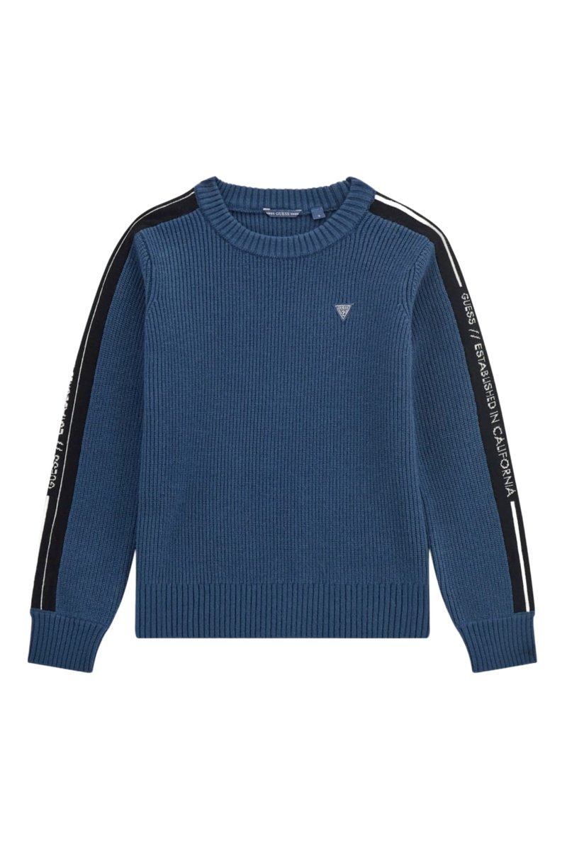 Bande contrastante à motifs à rayures avec lettrage et logo aux épaules et sur les manches.