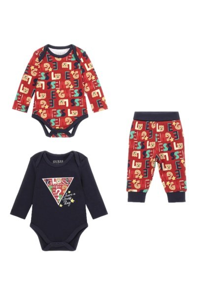 Ensemble 3 pièces en coton biologique - Rouge et bleu marine