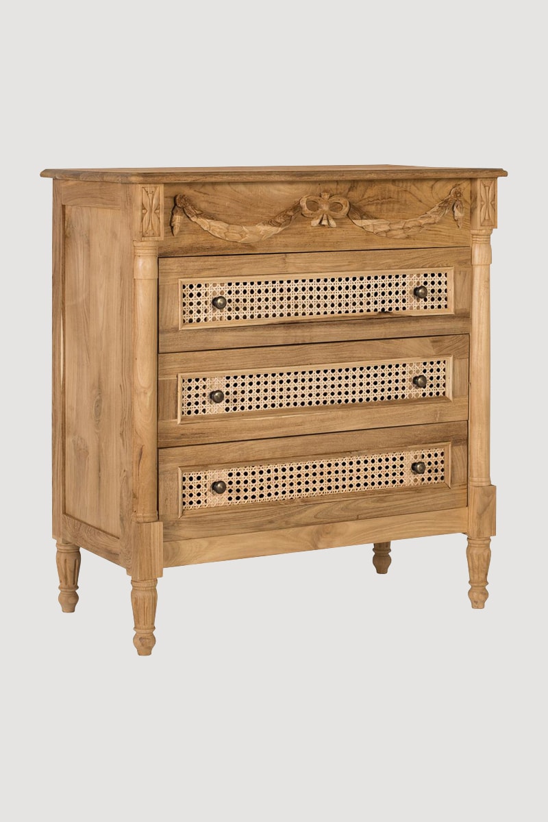 Table de chevet 3 tiroirs en teck massif - 80 x 86 x 40 cm