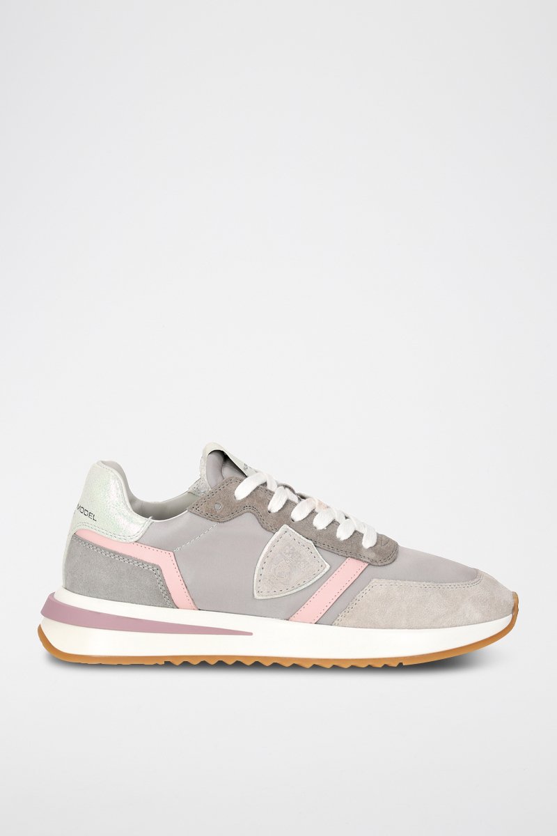 Baskets en cuir de veau nubuck Tropez - Gris clair et rose