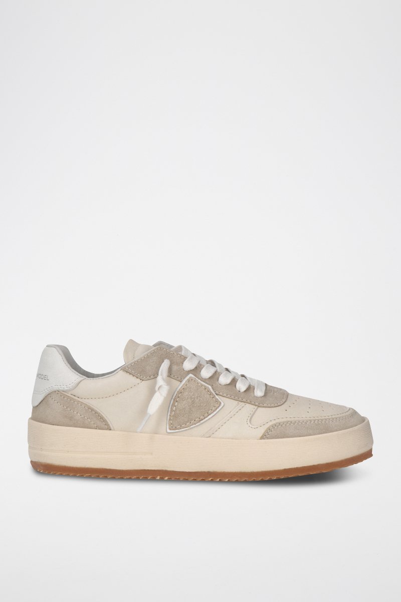 Baskets en cuir de chèvre et cuir de veau nubuck.