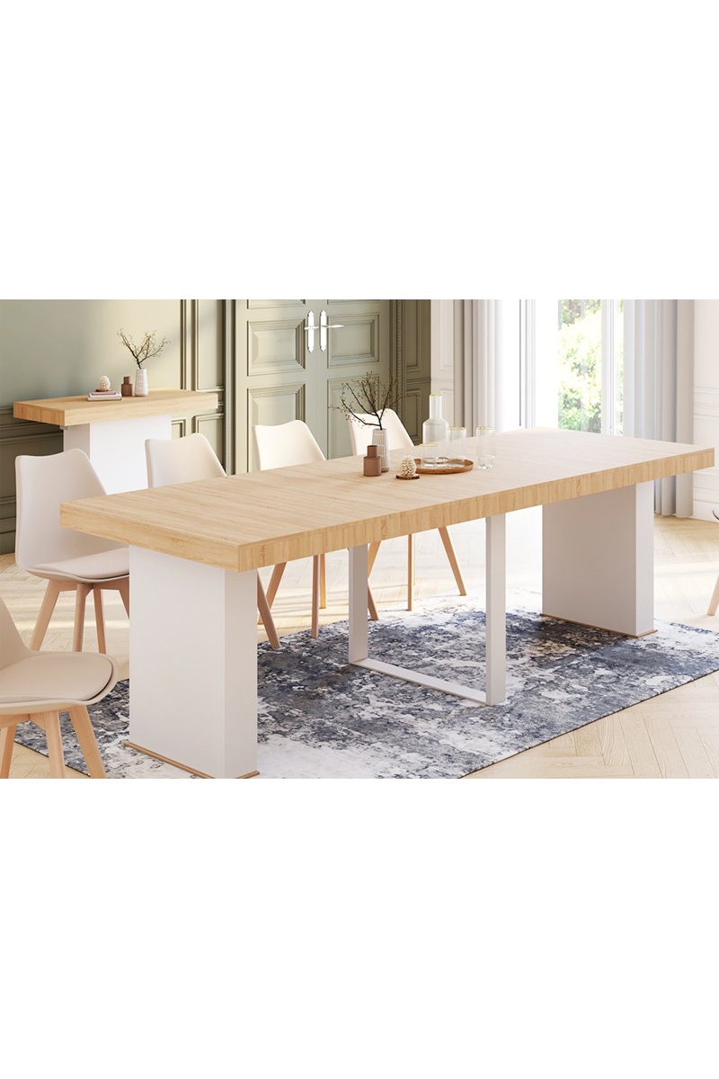 Table à manger extensible Tania - Imitation bois et blanc