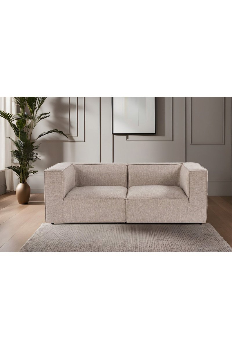 Canapé en bois de charme Sora - Beige - 2 places - Revêtement lin
