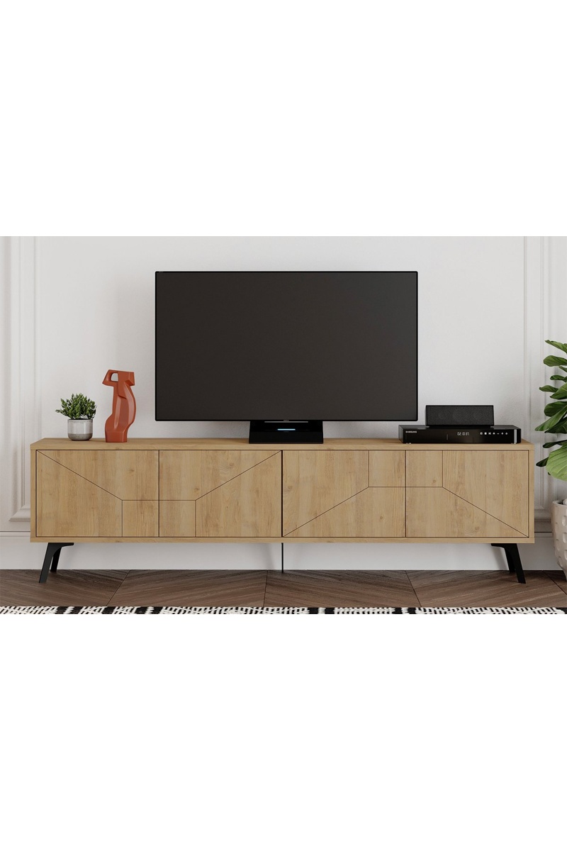 Meuble TV 4 portes - Imitation chêne