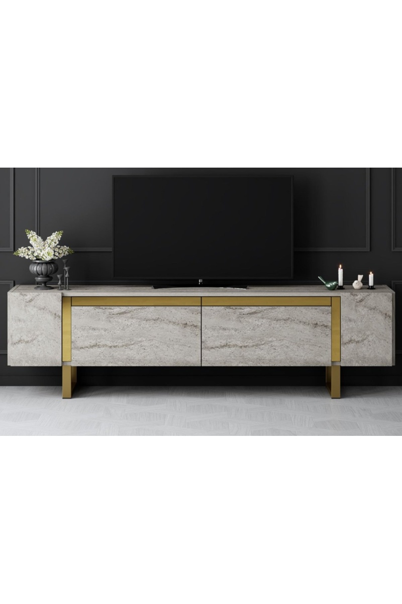 Meuble TV 2 abattants Yildiz - Imitation marbre et doré