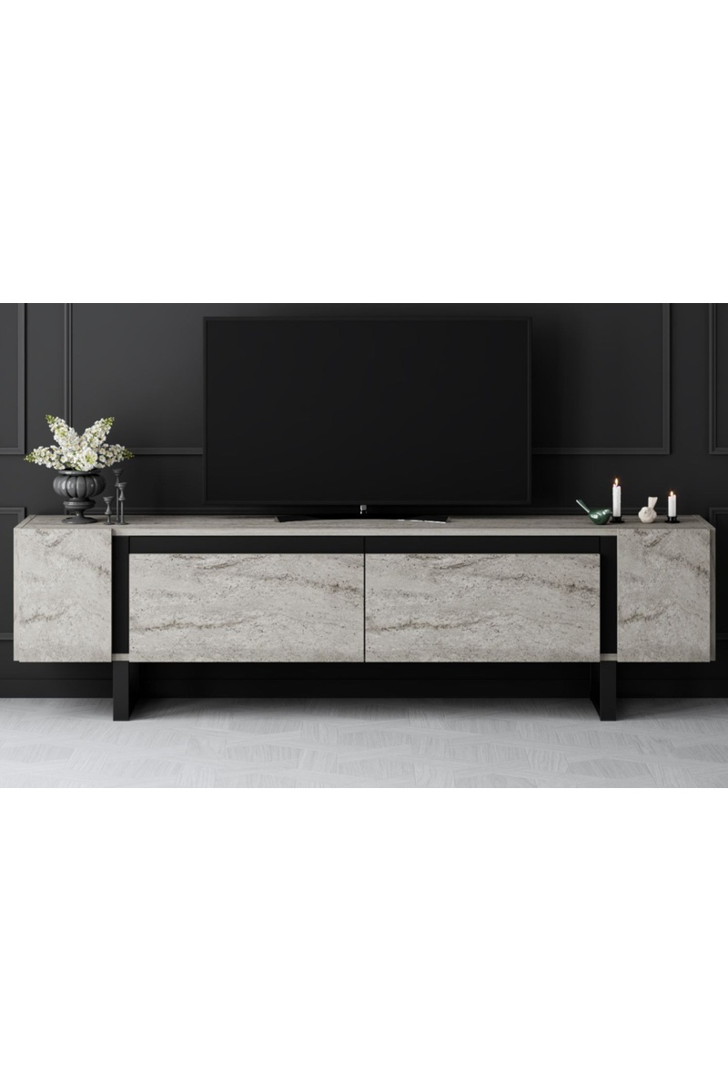 Meuble TV 2 abattants Yildiz et noir - 180 x 50 x 30 cm