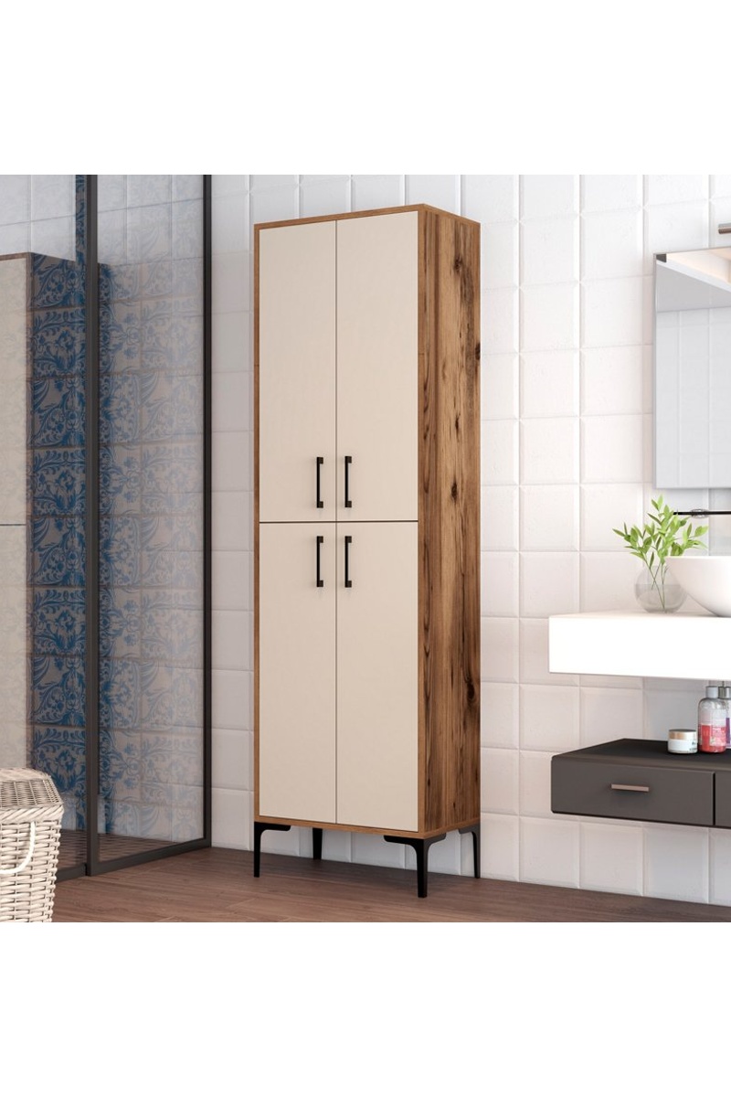 Meuble de rangement 4 portes - Crème et imitation bois