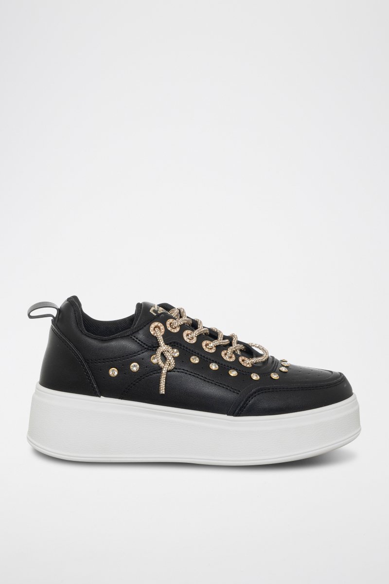 Empiècements en métal à strass et poinçons devant et sur les côtés.
