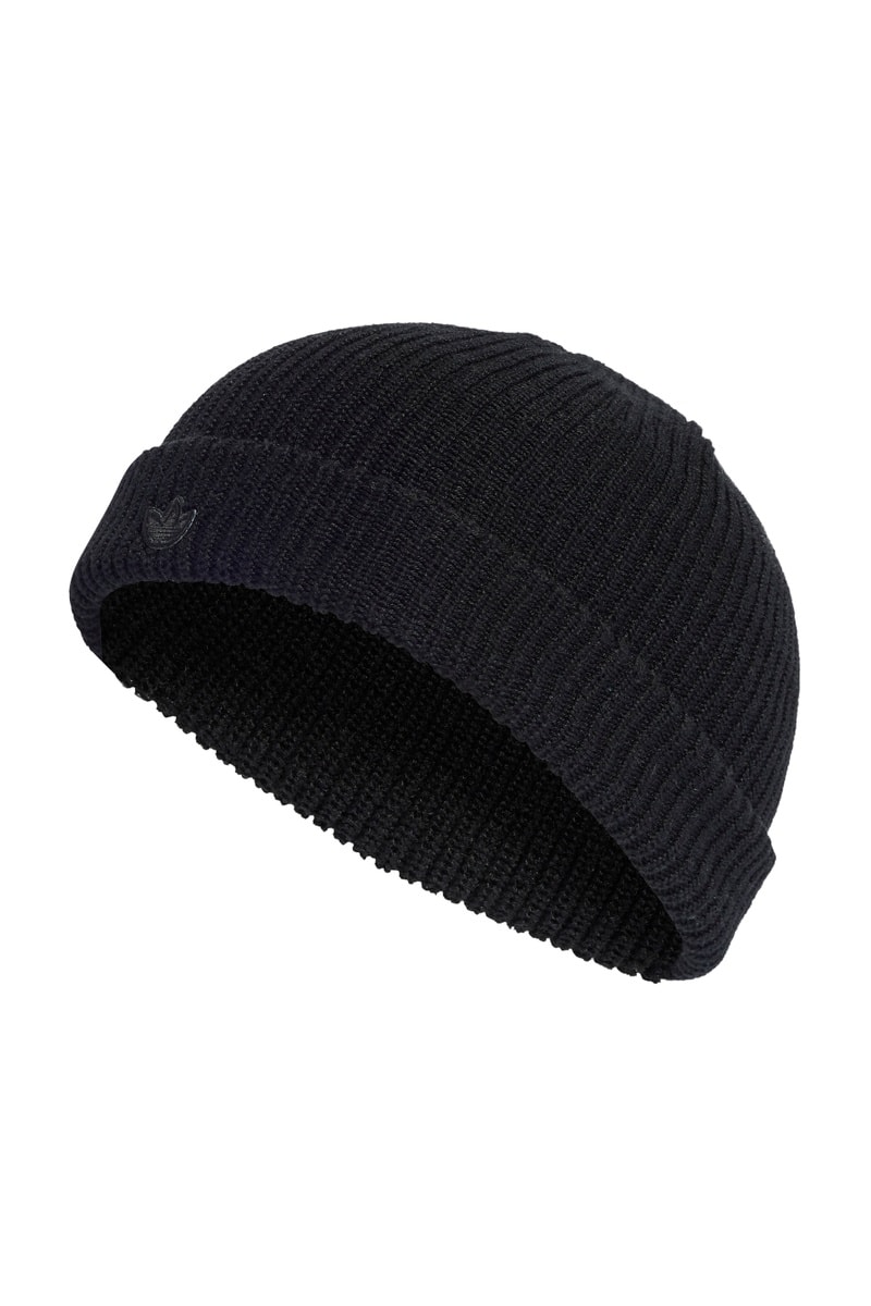 Bonnet en maille côtelée.