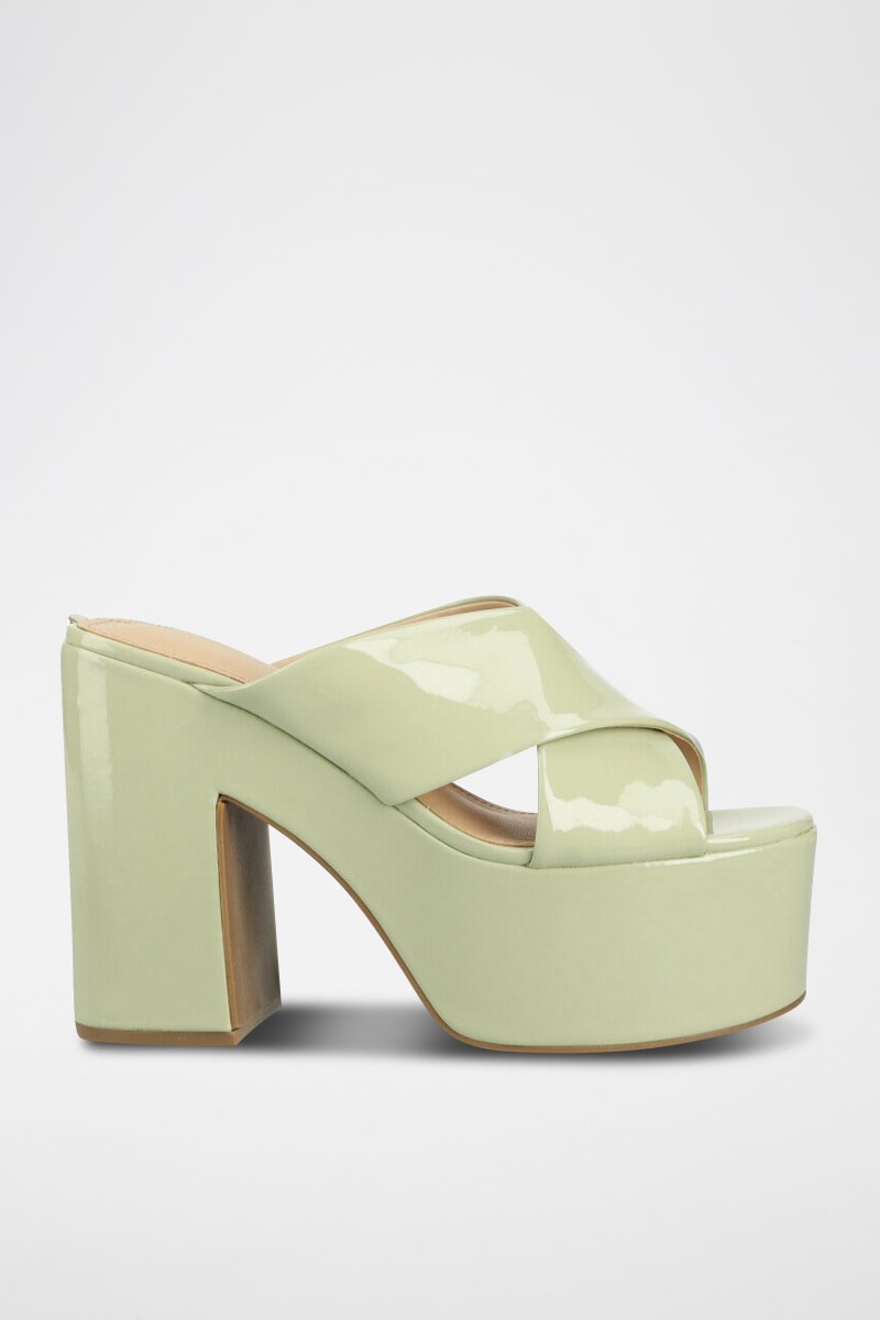 Mules à talons vernies.