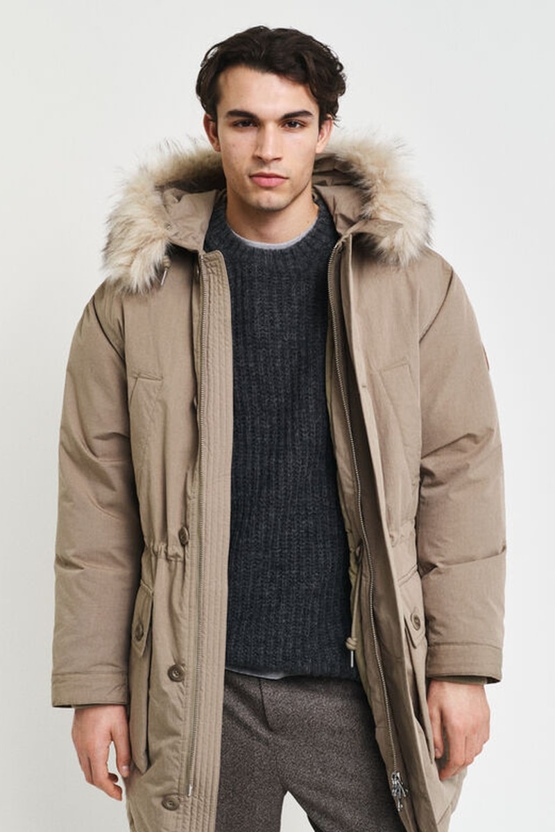 Parka à capuche amovible en fourrure à manches longues.