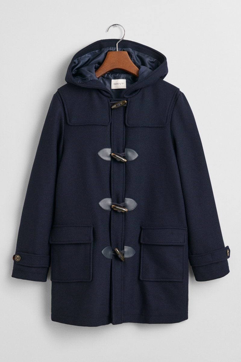 Duffle-coat regular à capuche à manches longues.