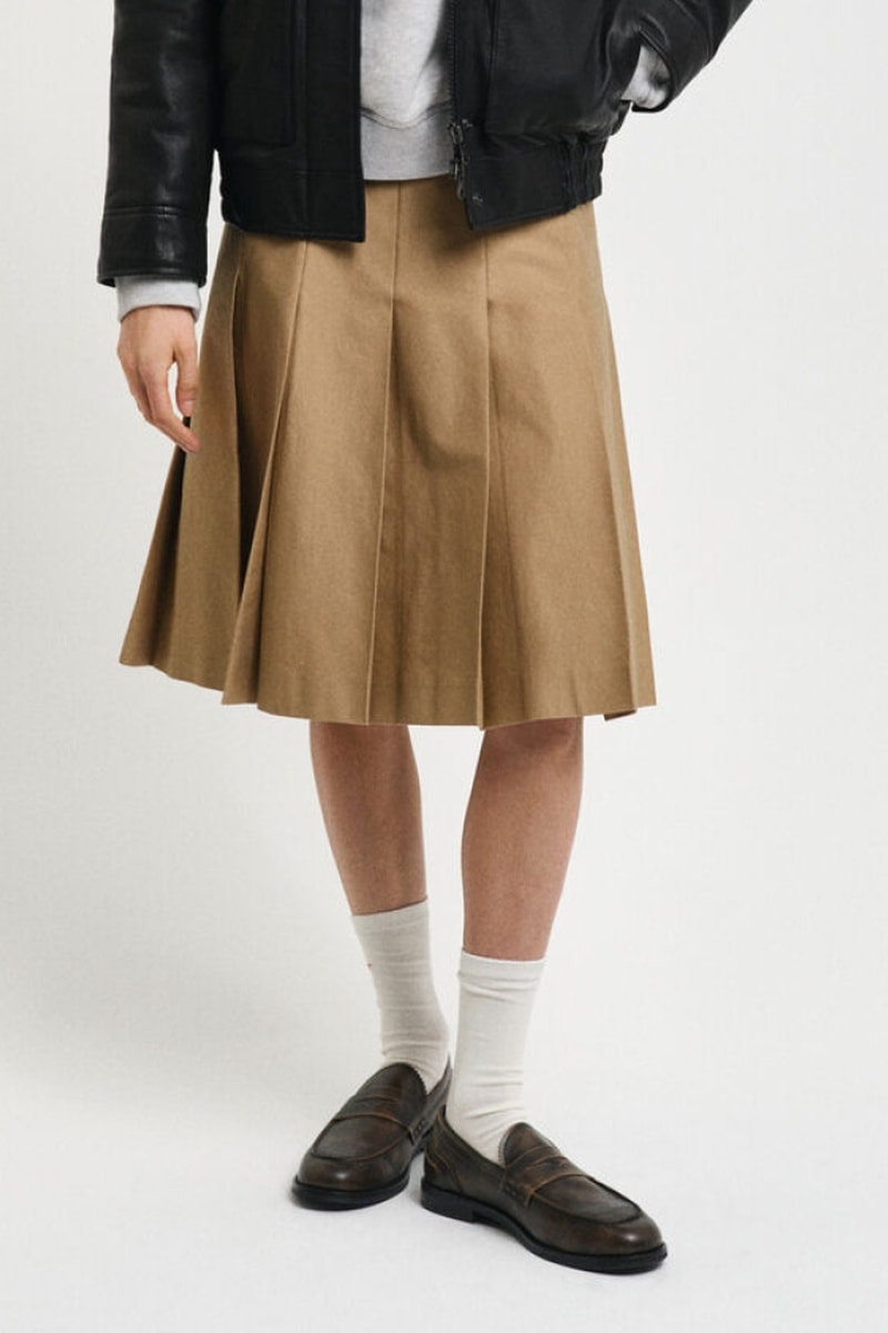 Jupe trapèze plissée midi.