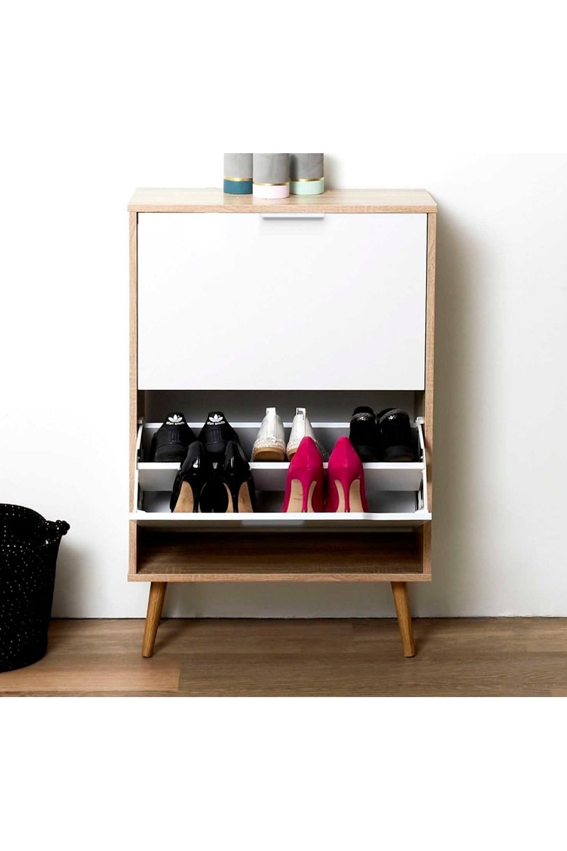 Meuble à chaussures 2 abattants en bois - 60 x 92 x 24 cm - Naturel et blanc