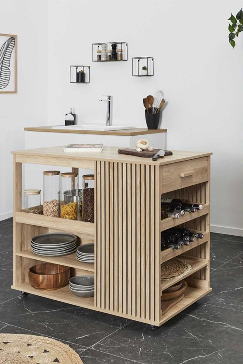 Ilot de cuisine à roulettes 1 tiroir - Imitation bois
