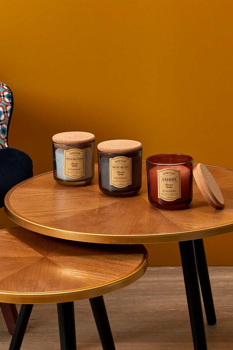 - 3 bougies parfumées d'apothicaire.